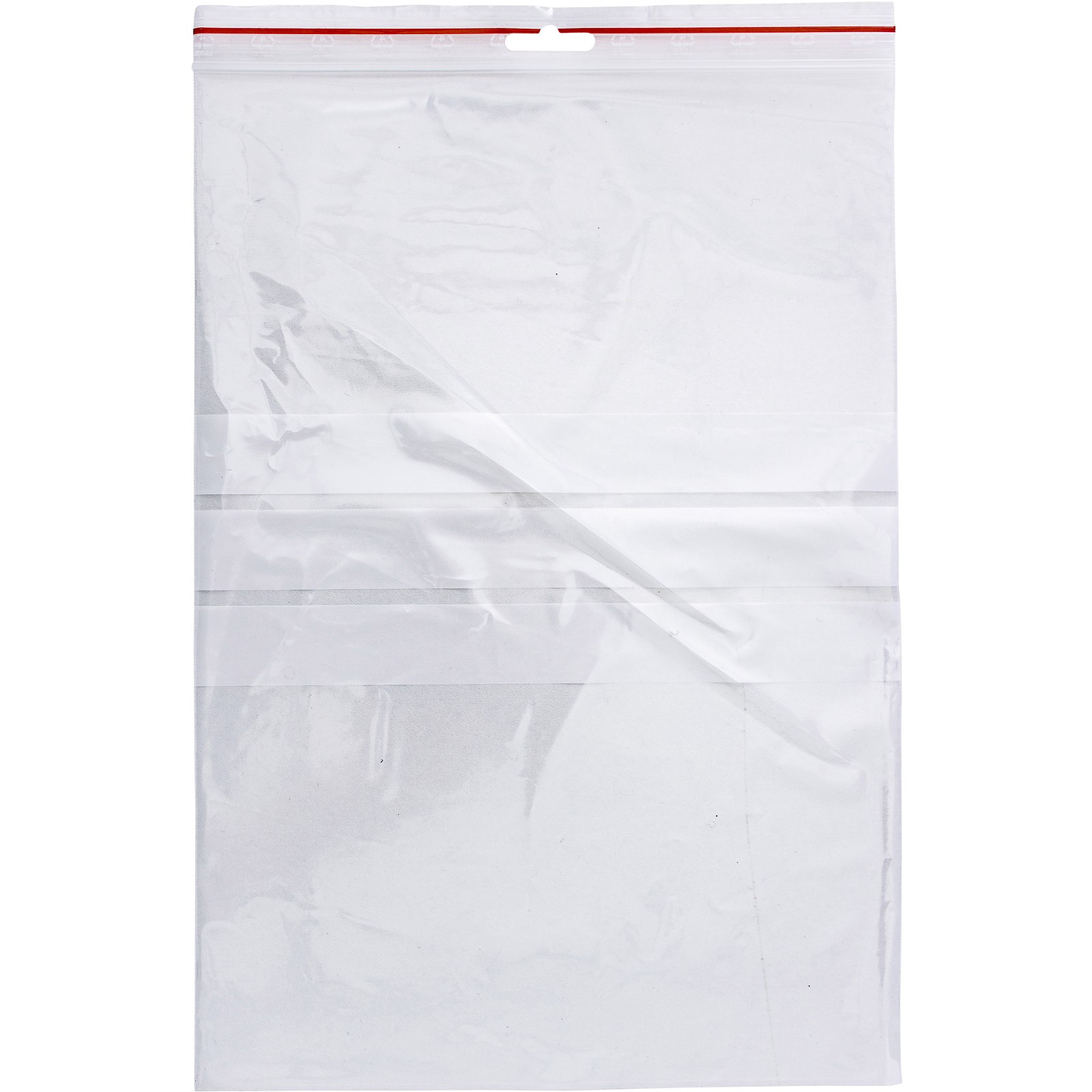 Let genlukkelige lynlåsposer med gennemsigtig struktur, hvide skrivelinjer og en rød linje lige over forseglingen. Poserne er super anvendelige og gode til at holde styr på mindre genstande, så de ikke forsvinder.