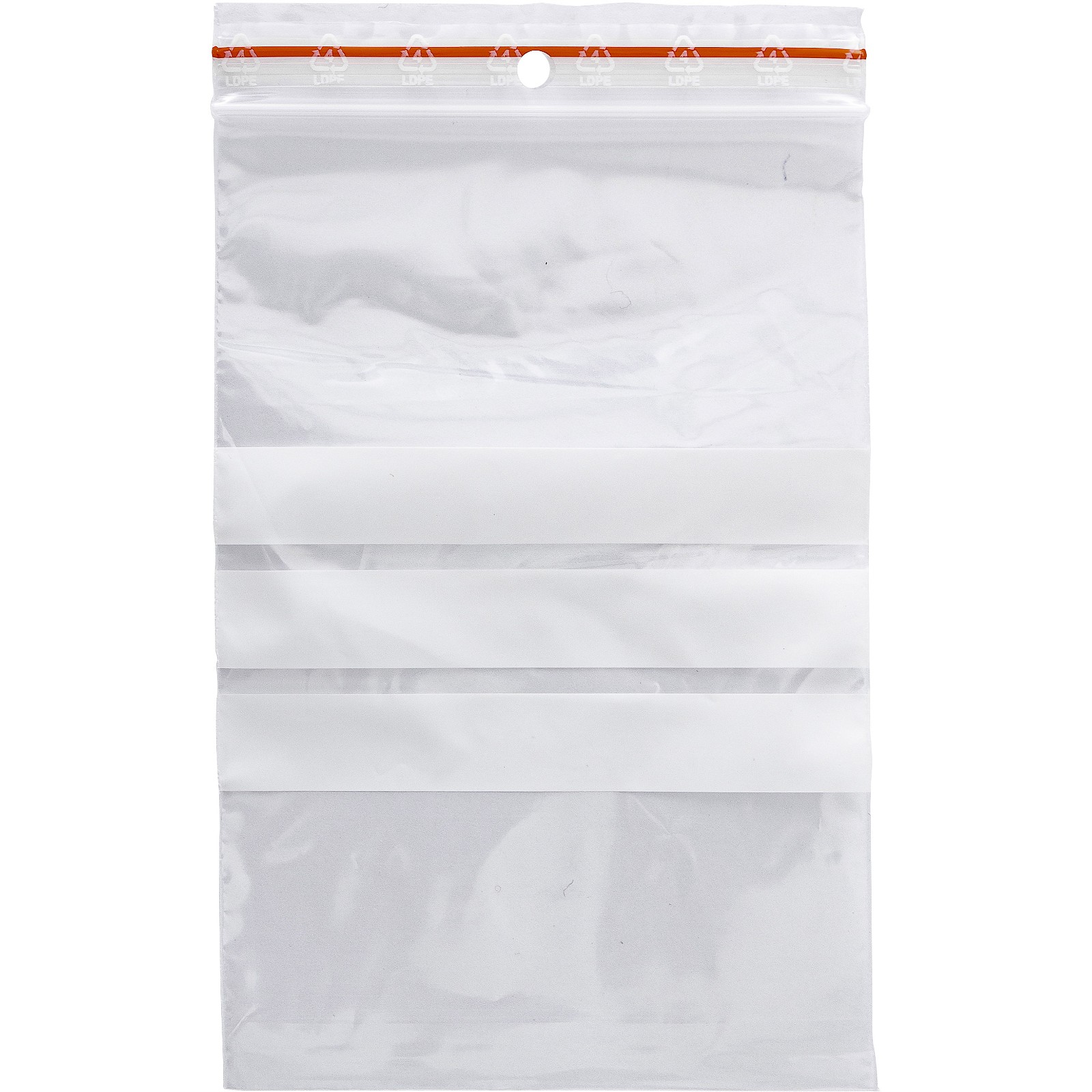 Let genlukkelige lynlåsposer med gennemsigtig struktur, hvide skrivelinjer og en rød linje lige over forseglingen. Poserne er super anvendelige og gode til at holde styr på mindre genstande, så de ikke forsvinder.