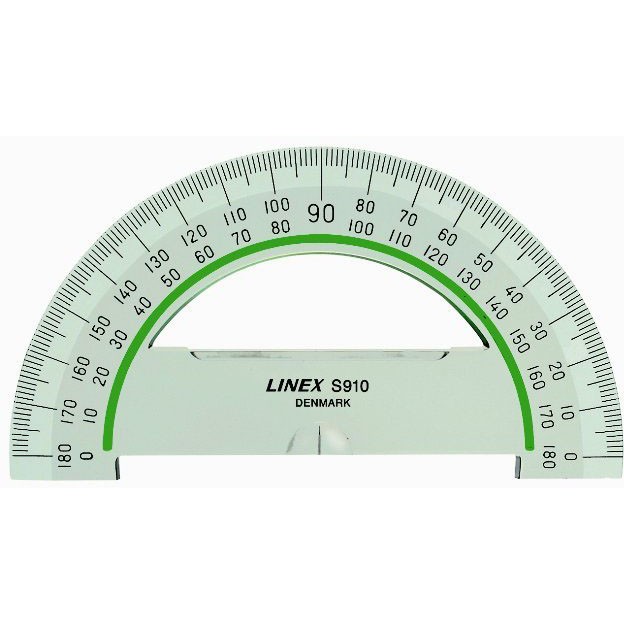 Linex halvcirkulær vinkelmåler 10 cm i Linex Super Series med det unikke antislide princip. En gummiliste på bagsiden griber fat i den underliggende flade, og vinkelmåleren ligger fast. Inddelt i 180 grader med modgående skala.