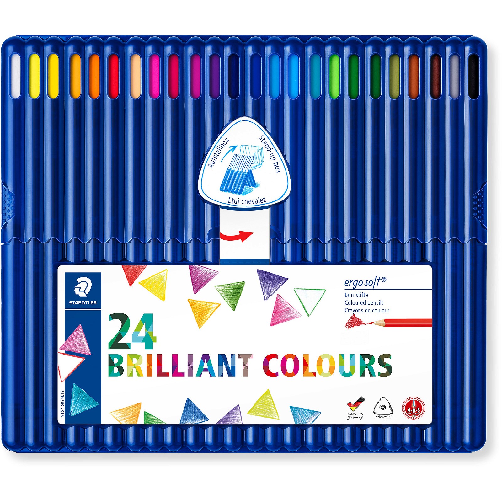 ergosoft® 157 farveblyant i ergonomisk trekantet form til afslappet og let skrivning. Unik, skridsikker blød overflade med navnefelt. A • B • S – den hvide beskyttende belægning forstærker minen og øger brudstyrken. Specielt blødt og kraftig farvende mine.