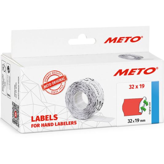 Meto permanente prisetiketter 19x32mm neonrød 5rl