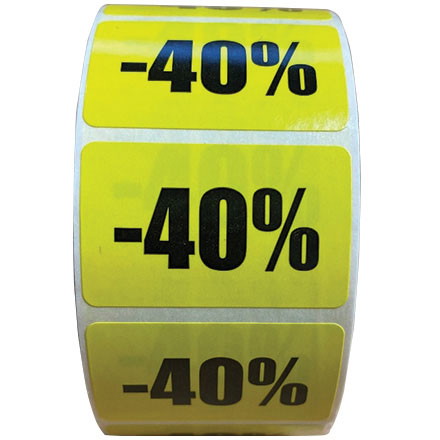 Etiket Ø36mm, Gul, 40% Fratrækkes ved kassen, aftagelig lim – 1.000 etiketter